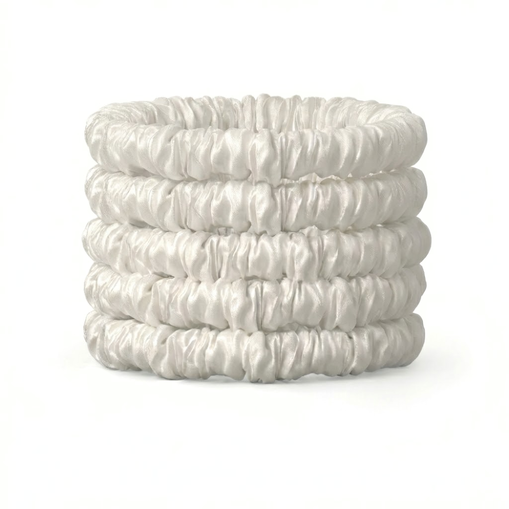 Seiden-Scrunchie Elfenbein Deluxe Set mit 5 Stück - 22 Momme